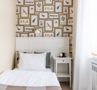 Самый небольшой, уютный и доступный номер – одноместный. Несмотря на его небольшой размер (14 м²), здесь есть всё для комфортного проживания, включая кондиционер и телевизор с плоским экраном. В комнате – кровать с деревянным изголовьем и ортопедическим матрасом, тумба, стол для чаепития, шкаф для одежды. В распоряжении гостя холодильник, электрочайник, чай и принадлежности для приготовления горячих напитков.