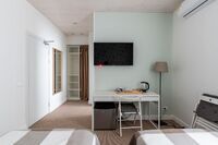 Здесь есть всё для комфортного проживания, включая кондиционер и телевизор с плоским экраном. У входа – шкаф для одежды, в комнате – либо две кровати (90×200), либо одна двуспальная кровать «king size» (180×200) с ортопедическими матрасами и подушками. В номере организовано удобное эргономичное пространство со столом и стульями. В распоряжении гостей холодильник, электрочайник, чай и принадлежности для приготовления горячих напитков.