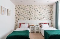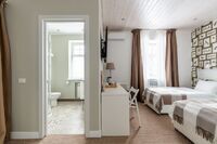 Здесь есть всё для комфортного проживания, включая кондиционер и телевизор с плоским экраном. У входа – шкаф для одежды, в комнате – либо две кровати (90×200), либо одна двуспальная кровать «king size» (180×200) с ортопедическими матрасами и подушками. В номере организовано удобное эргономичное пространство со столом и стульями. В распоряжении гостей холодильник, электрочайник, чай и принадлежности для приготовления горячих напитков.